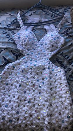 White Prom Dress With White and Blue Beads$100Paramount, CA