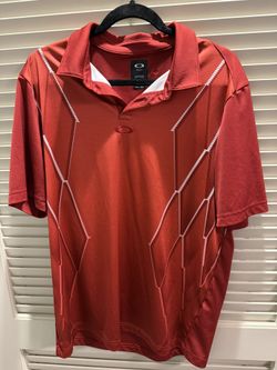 Oakley Polo Shirt Men's L Performance Center Logo O Red Abstract Geometric Golf$25Irvine, CA