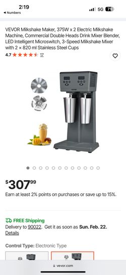 Milkshake Maker, 375W x 2 Electric Milkshake Machine, Commercial Double Heads Drink Mixer Blender$250West Hollywood, CA
