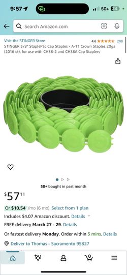 STINGER 3/8" StaplePac Cap Staples - A-11 Crown Staples 20ga (2016 ct), for use with CH38-2 and CH38A Cap Staplers$40Rocklin, CA