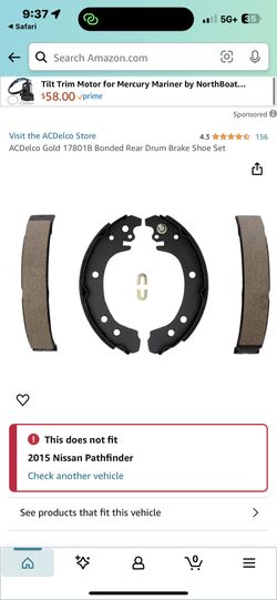 ACDelco Gold 17801B Bonded Rear Drum Brake Shoe Set$20Rocklin, CA