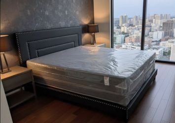 New King Bed Frame Dark Gray + Plastic Sealed King Mattress + Box Spring $399Miami Gardens, FL