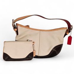 “Coach Canvas Leather Shoulder Bag + Matching Wristlet Brown Cream Red Lining Purse Set”$139Maywood, IL