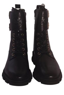 Michael Kors Black Leather Combat Boots Gold Hardware Lug Sole Moto Size 8$110Maywood, IL