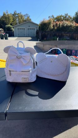 Loungefly Disney Minnie Mouse Sequin Wedding Womens Double Strap Shoulder Bag Purse & Mini Back Pack$150Escondido, CA