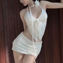 French spice girl hanging neck suspender vest sexy low waist slim hip skirt female summer suit$10Temple City, CA