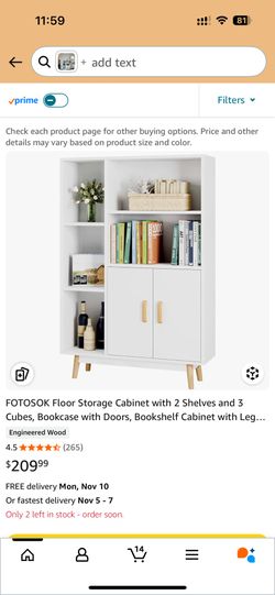 OTOSOK Floor Storage Cabinet with 2 Shelves and 3 Cubes, Bookcase with Doors, Bookshelf Cabinet with Legs for Kitchen, Living Room and Home Office, Wh$95Alhambra, CA