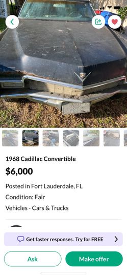 1968 Cadillac Convertible $3,500Fort Lauderdale, FL