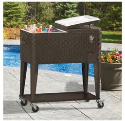 80 Quart Wicker Patio Rolling Cooler Cart On Wheels W/ Tray Ice Chest Backyard Patio Furniture$85La Habra Heights, CA