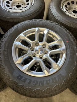 BRAND NEW CHEVY SILVERADO WHEELS WITH NEW GOODYEAR WRANGLER AT TIRES 265/65R18$1,299Fresno, CA