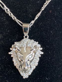 Brand New Sterling Silver 9.25 Set The Necklace Is 22”length By 3.5mm Wide And The Lion Pendant Is 25mm High And Has Have Incrustes Stones $95Moreno Valley, CA
