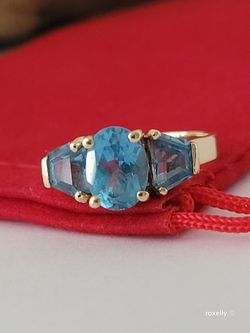 14k Yellow Gold Blue Topaz Ring Size 8 Solid Gold!/ Anillo de Oro con Topacios Azules! 👌🎁Post Tags: Anillo de Oro$325Fullerton, CA