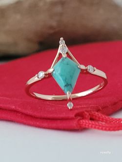 14k Rose Gold Turquoise and Diamonds Ring Size 7.5 Solid Gold!/ Anillo de Oro Rosado con 1 Turquesa y Diamantes! 👌🎁Post Tags: Anillo de Oro$295Fullerton, CA