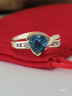 10k Yellow Gold Blue Topaz and Diamond Ring Size 7 Solid Gold!/ Anillo de Oro Amarillo con 1 Topacio Azul y Diamantes! 👌🎁Post Tags: Anillo de Oro$265Fullerton, CA