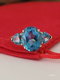 14k Yellow Gold Blue Topaz Ring Size 6.5 Solid Gold!/ Anillo de Oro Amarillo con Topacios Azules! 👌🎁Post Tags: Anillo de Oro$275Brea, CA