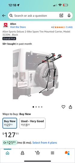 Allen Sports Deluxe 2-Bike Spare Tire Mounted Carrier – Model 322DN (Like New) $80West Covina, CA