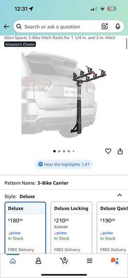 Allen Sports 3-Bike Hitch Rack – Fits 1 ¼” & 2” Hitch (Like New)$100West Covina, CA