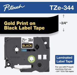 Brother Genuine P-Touch TZE-344 Tape, 3/4" (0.7 mm) Standard Laminated P-Touch Tape, Gold on Black, Laminated for Indoor or Outdoor Use, Water-Resista$15Fresno, CA