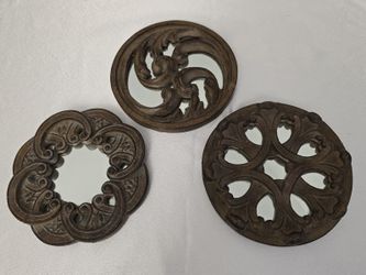 Set of 3 Ornate Round Framed Mirror Wall Decor Bronze Heavy Resin 1980’s 6”$15Peculiar, MO