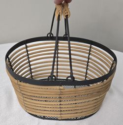 Metal & Bamboo Straw Basket 10x8x5$10Peculiar, MO