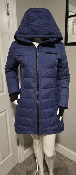 Orolay Womens Small Full Zip Hooded Puffer Down Coat Blue Slant Pocket Slim Fit $75Peculiar, MO