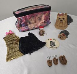 8 piece Vintage Yorkie Set Decorative, Jewelry, Ornament, Pin, Bag w/Leash, Statues, Fabric Sequin$25Peculiar, MO