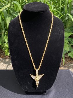 Gold Chain Rope Chain Necklace 24in 4mm And Icy Angel Pendant Set $45Haddon Heights, NJ