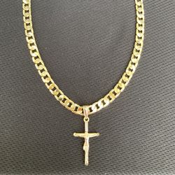 Gold Chain Cuban Link Necklace 20in 7mm And Gold Cross Crucifix Pendant Set $50Haddon Heights, NJ