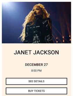 2 Tickets - Janet Jackson - 12/27$200Citrus Heights, CA