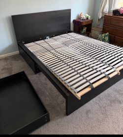 IKEA Black Queen Side Bed With Slots And Bottom 4 Large Drawers On Wheels $249Cherry Hill, NJ