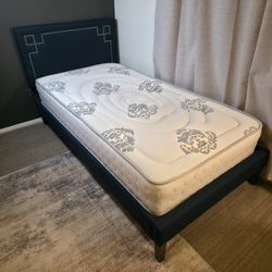 Navy Blue Upholstered Twin Bed Frame with Slats And New Mattress$250Corona, CA