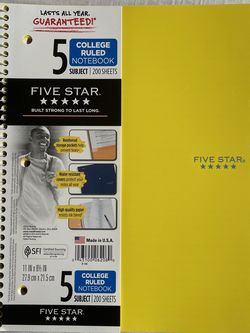 Five Star 5 Subject College Ruled Notebook$15Tucson, AZ