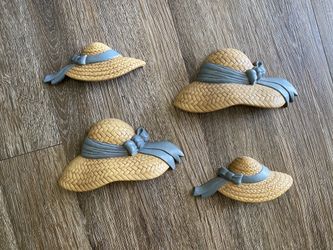 4 Vintage Cottagecore Straw Hats Wall Decor Plastic Rattan & Blue Ribbon Gallery Boho$12Zebulon, NC