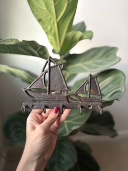 Wall Key Rack Vintage Cast Iron Metal Sailboats Nautical Themed Decor Cottage Farmhouse$14Zebulon, NC