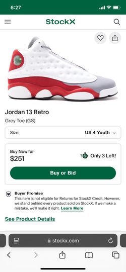 Jordan Retro 13 Grey Toe Size 4Y$130Lutz, FL