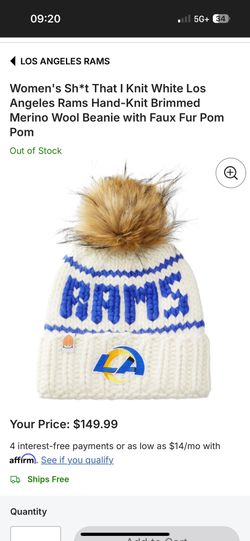 Women's Sh*t That I Knit White Los Angeles Rams Hand-Knit Brimmed Merino Wool Beanie with Faux Fur Pom Pom$120Goodyear, AZ