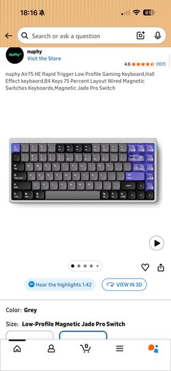 nuphy Air75 HE Rapid Trigger Low Profile Gaming Keyboard,Hall Effect keybaord,84 Keys 75 Percent Layout Wired Magnetic Switches Keyboards,Magnetic Jad$130Santa Teresa, NM