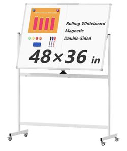 Large Rolling Whiteboard 48”x36” Double-Sided / Pizarra Blanca Grande con Ruedas Doble Cara – Magnetic Dry Erase Board$85Pembroke Pines, FL