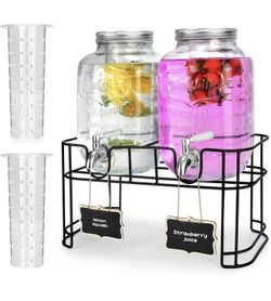 Brand New 1 Gallon Glass Drink Dispensers For Parties 2PACK.Beverage Dispenser,Glass Drink Dispenser With Stand And Stainless Steel Spigot$25Chino, CA