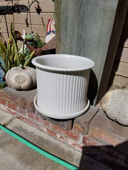 Planter. beautiful white PLANTER. ceramic heavy duty ... With drain hole and drip Tray$35Grand Terrace, CA