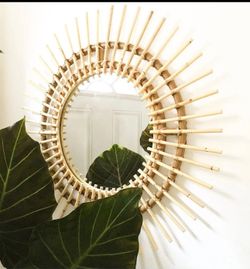 Inner Mirror 15” with Bamboo Spokes 30”D with Real Rattan Included ,Tan/Light Brown Round Sun Mirror$49Lakewood, CA