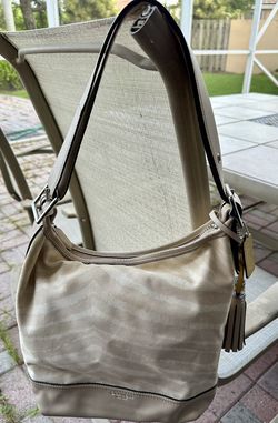 Coach Legacy Zebra Print Zip Duffle Bag Tan/Ivory SV/Light Sand$36Boynton Beach, FL