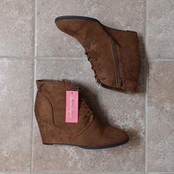 New With Tags American Rag Brown Faux Suede Wedge Ankle Boots Sz.10$38Baton Rouge, LA