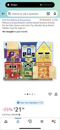 Melissa & Doug Wooden Latches Board Sensory Activity Toy for Kids, Doors and Locks Toy, Wooden Busy Board, Toddler Toys for Ages 3+$10San Lorenzo, CA