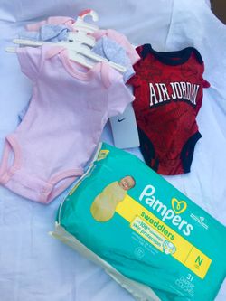 Brand News With Tag Girls Nike Newborn Onesies + 1 Air Jordan And 1 Pack Of Pampers Newborn 31 Ct$20Mesa, AZ