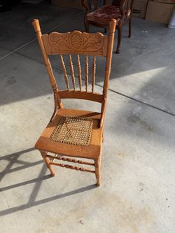 Early 20th Century Pair of Antique Victorian Style Pressback Spindle Oak Carved Cane Seat Side Chairs$50Rocklin, CA