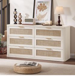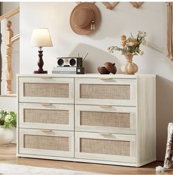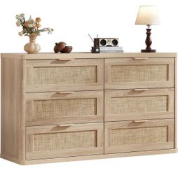 54” Rattan 6 Drawer Dresser, Boho Bedroom Chest of Drawers, Natural Oak — New in Box$220Dublin, CA