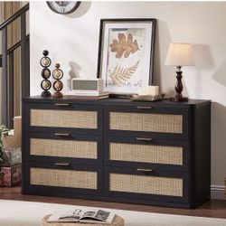 Black 54 Inch Rattan with 6 Drawer Dresser for Bedroom$200Dublin, CA