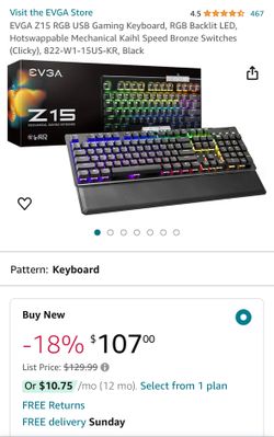 E VGA Z15 RGB Gaming Keyboard, RGB Backlit LED, Hotswappable Mechanical Kailh Speed Silver$63Mercer Island, WA