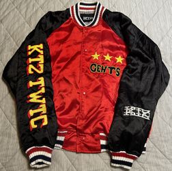 Very Rare-KTZ Red And Black Souvenir Jacket With Character Embroidery On The Back. Unisex Size Large$250Acampo, CA